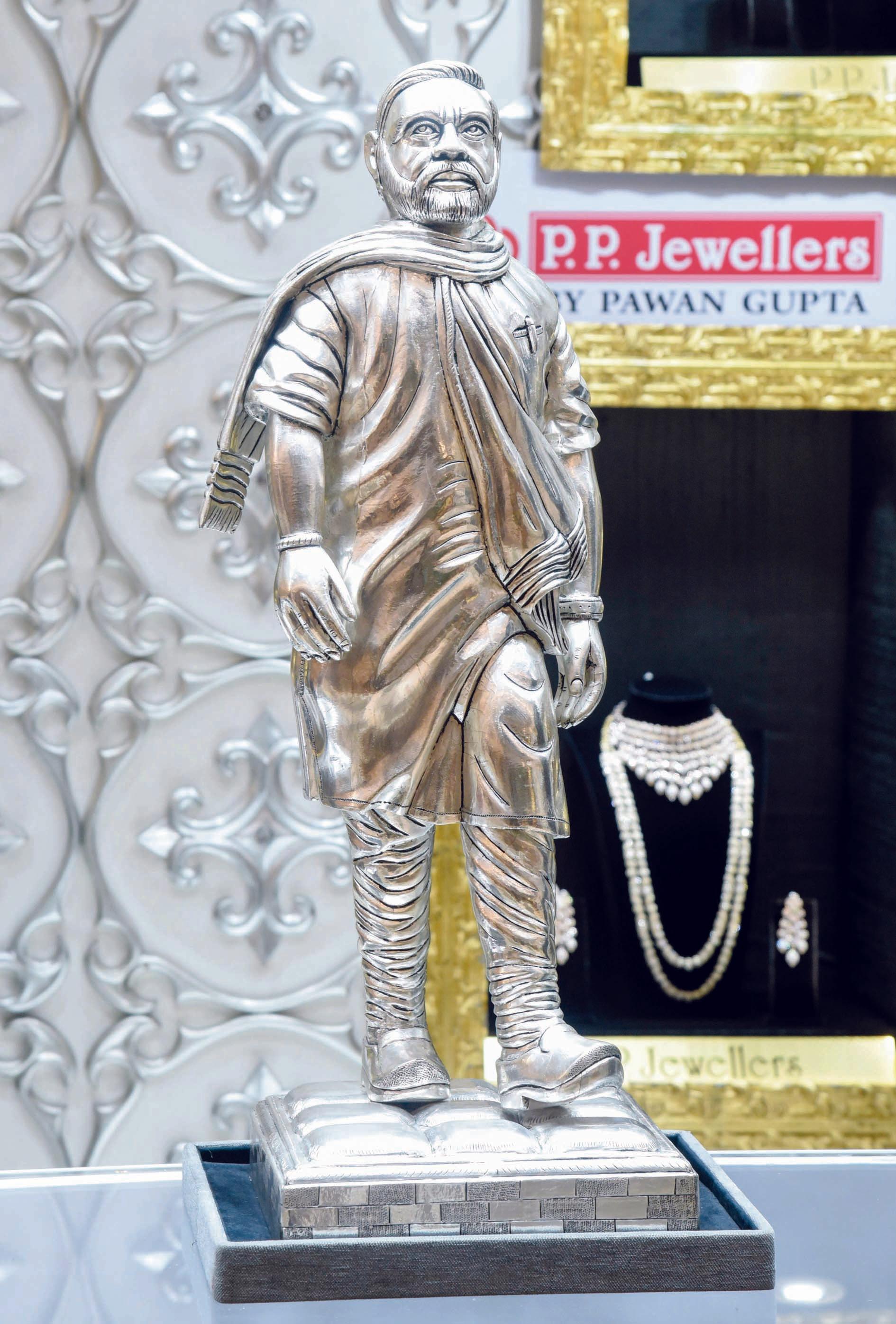 ધનતેરસના પવિત્ર દિવસે લોકોમાં સોના-ચાંદીની ખરીદીનું પરંપરાગત મહત્ત્વ હોવાથી જ્વેલર્સ ગ્રાહકોને આકર્ષવા માટે અનેક નુસખા અજમાવતા હોય છે. દિલ્હીમાં એક જ્વેલરે ધનતેરસના દિવસે નરેન્દ્ર મોદીની ચાંદીની મૂર્તિ શોરૂમમાં મૂકી હતી.