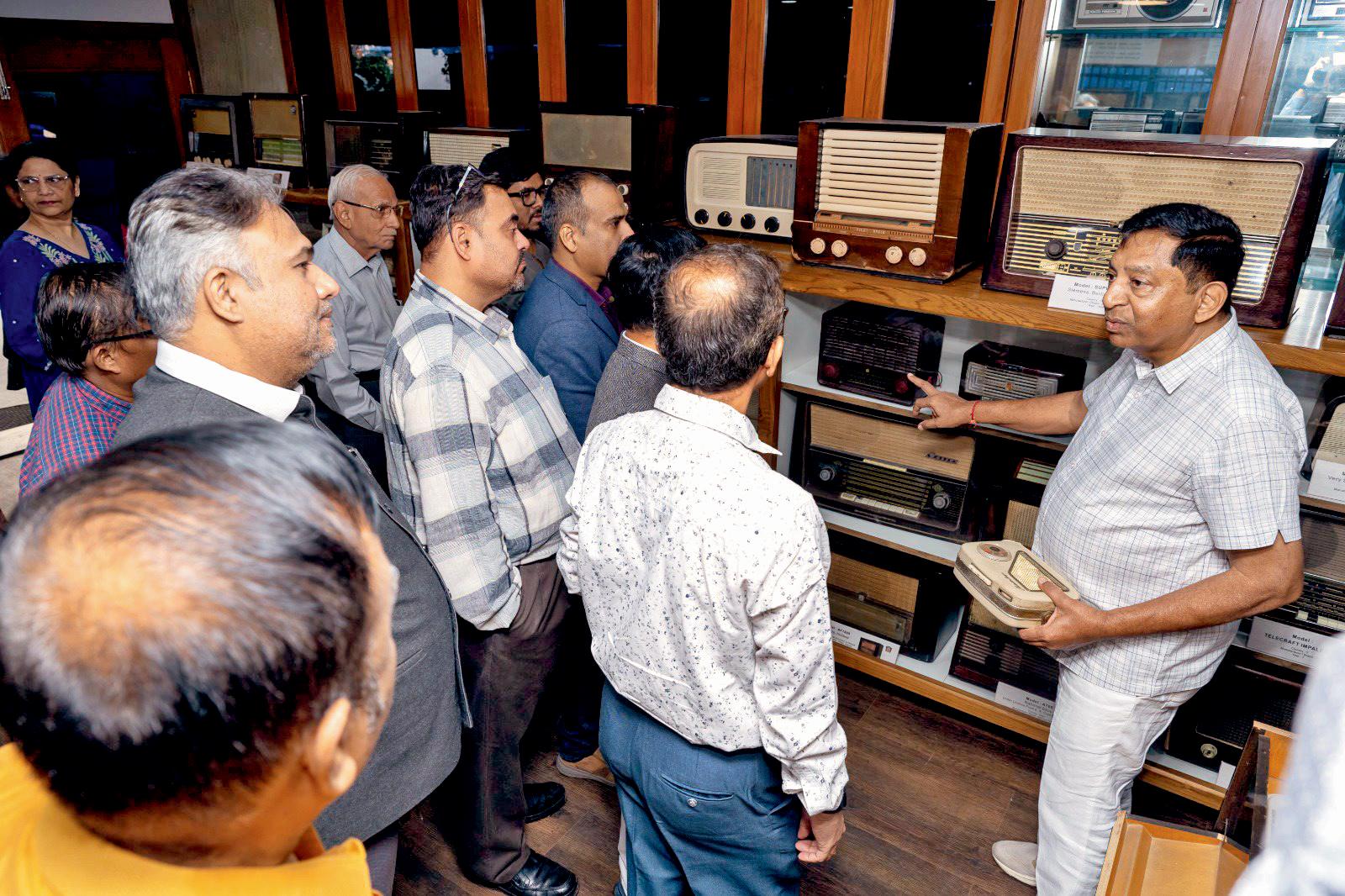 રેડિયો મ્યુઝિયમ જોવા આવેલા લોકોને રેડિયો વિશે માહિતી આપી રહેલા સિદ્ધાર્થ પટેલ.