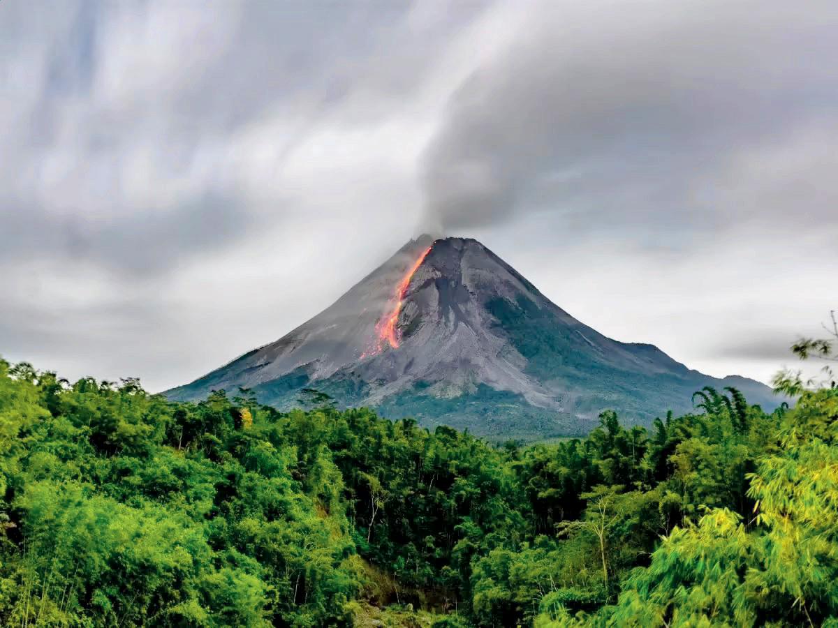 ઇન્ડોનેશિયામાં માઉન્ટ મેરાપી પર જ્વાળામુખી અત્યારે પણ સક્રિય છે અને લાવા ઓકી રહ્યો છે.