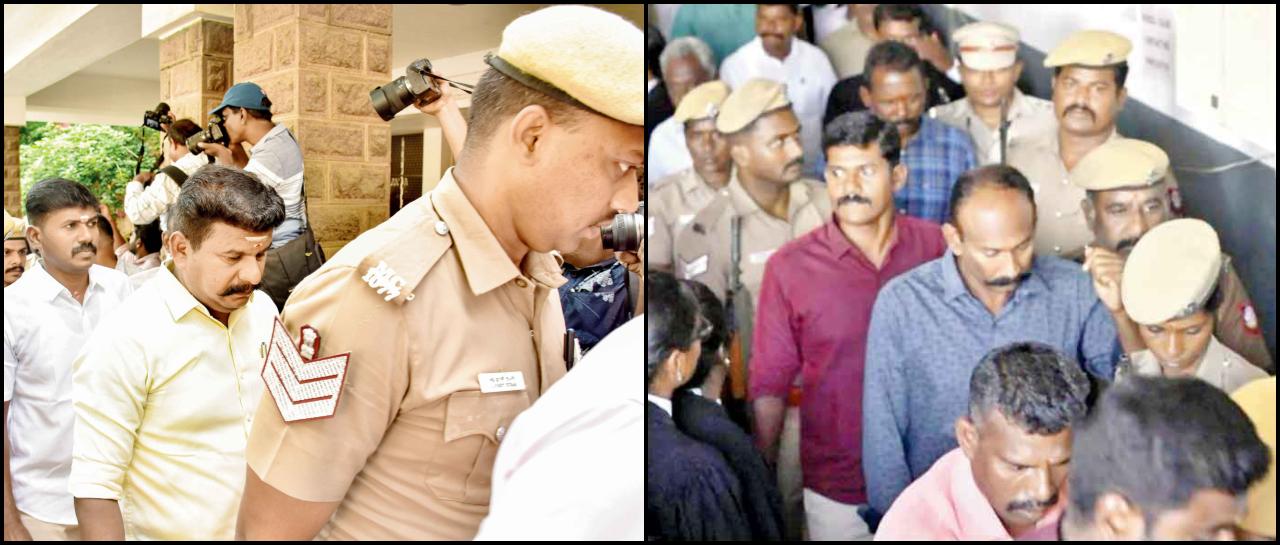 છઠ્ઠી એપ્રિલે મદુરાઈ કોર્ટે મોતની સજા સંભળાવી એ સમયે કોર્ટમાં આવેલા ૯ આરોપીઓ.