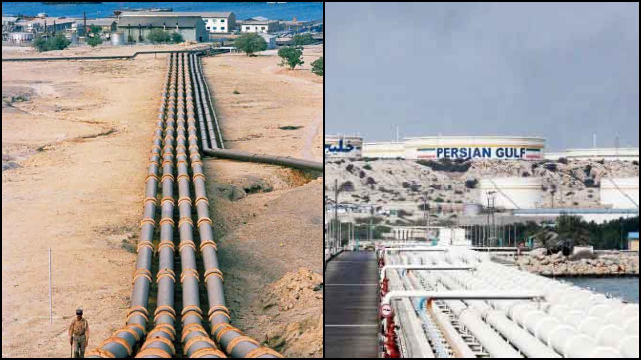 ૧૭ મિલ્યન બૅરલ કૅપેસિટીવાળા ટૅન્ક ફાર્મથી ખાર્ગ આઇલૅન્ડની જેટ્ટીની નીચે તેલ લઈ જતી પાઇપો.