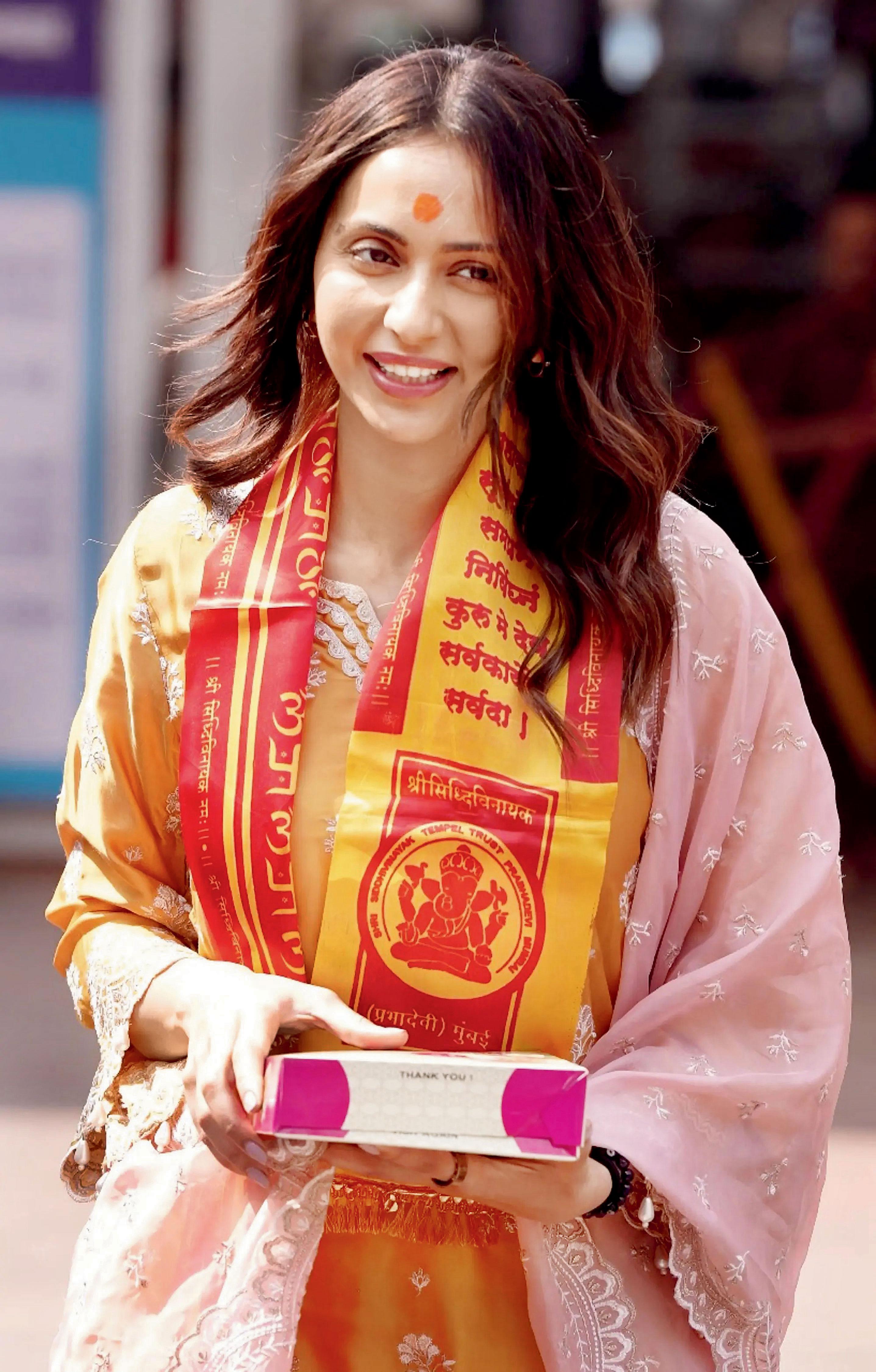 રકુલ પ્રીત સિંહે ગઈ કાલે તેની ફિલ્મ ‘દે દે પ્યાર દે 2’ની રિલીઝના આગલા દિવસે સિદ્ધિવિનાયક મંદિરમાં ભગવાન ગણપતિના આશીર્વાદ લીધા. આ સમયે રકુલે પીળા રંગનો ડ્રેસ પહેર્યો હતો અને તે અત્યંત સુંદર લાગી રહી હતી. રકુલે મંદિરમાંથી બહાર નીકળ્યા બાદ ફોટોગ્રાફર્સ સાથે વાત કરી અને તેમને પ્રસાદ પણ આપ્યો.