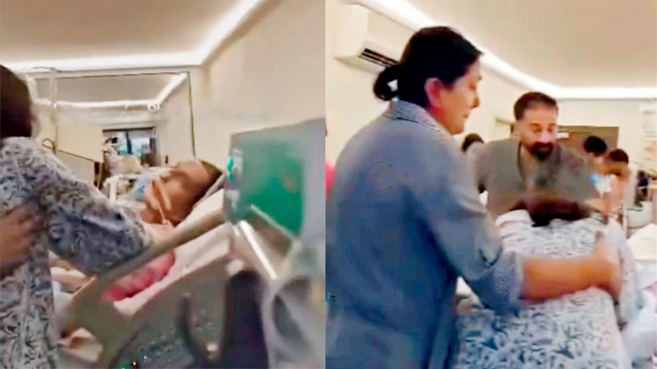 ધર્મેન્દ્રને ઊઠવાની રડમસ આજીજી કરતાં પ્રકાશ કૌર અને તેમને સંભાળતી દીકરી