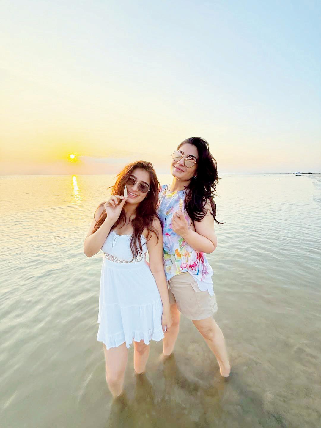 રવીના ટંડનની દીકરી રાશા થડાણીએ હાલમાં મમ્મી સાથેની તેની બીચ-ટ્રિપની કેટલીક સુંદર તસવીરો સોશ્યલ મીડિયામાં શૅર કરી છે. આ તસવીરોમાં રવીના અને રાશા બન્ને કુદરતી સૌંદર્ય વચ્ચે શાંતિભરી પળો માણતાં અને મસ્તી કરતાં જોવા મળે છે. જોકે આ તસવીર કઈ જગ્યાની છે એ વિશે કંઈ પણ સ્પષ્ટતા કરવાનું રાશાએ ટાળ્યું છે.