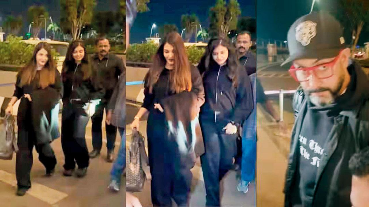 થોડા સમય પહેલાં અભિષેક બચ્ચન અને ઐશ્વર્યા રાય બચ્ચન વચ્ચે અણબનાવની ચર્ચા હતી. જોકે આ દંપતીએ તમામ અફવાઓને નકારી કાઢતાં સતત જાહેરમાં સાથે દેખાઈને બધાને જવાબ આપ્યો છે. હાલમાં દીકરી આરાધ્યાની સ્કૂલના ઍન્યુઅલ ફંક્શનમાં સાથે હાજરી આપ્યા બાદ ઐશ્વર્યા અને અભિષેક મંગળવાર સવારે આરાધ્યા સાથે ઍરપોર્ટ પર જોવા મળ્યાં હતાં અને ત્રણેય ક્રિસમસ અને ન્યુ યર સેલિબ્રેશન માટે બહાર જવા રવાના થયાં છે. ઍરપોર્ટ પર અભિષેક, ઐશ્વર્યા રાય અને આરાધ્યા બ્લૅક આઉટફિટમાં જોવા મળ્યાં હતાં. આ દરમ્યાન ઐશ્વર્યાએ ફોટોગ્રાફર્સ સામે હાથ હલાવીને તેમને પૉઝિટિવ ફીડબૅક પણ આપ્યો હતો.