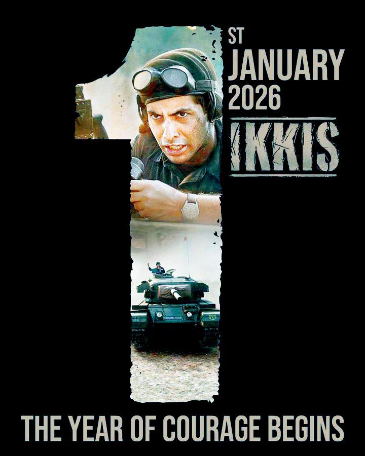 હાલમાં બૉક્સ-ઑફિસ પર ‘ધુરંધર’ ધમાલ મચાવી રહી છે અને ૨૫ ડિસેમ્બરે કાર્તિક આર્યન-અનન્યા પાંડેની ‘મૈં તેરા તૂ મેરી, તૂ મેરી મૈં તેરા’ પણ રિલીઝ થવાની છે. આ સંજોગોમાં અગસ્ત્ય નંદાને લીડ રોલમાં ચમકાવતી દિવંગત અભિનેતા ધર્મેન્દ્રની છેલ્લી ફિલ્મ ‘ઇક્કીસ’ની રિલીઝ પાછી ઠેલવામાં આવી છે. હવે મેકર્સ દ્વારા આ ફિલ્મ ૨૫ ડિસેમ્બરના બદલે પહેલી જાન્યુઆરીએ રિલીઝ કરવામાં આવશે એવી જાહેરાત કરવામાં આવી છે. સોશ્યલ મીડિયામાં મેકર્સે જે પોસ્ટ શૅર કરી છે એમાં લખ્યું છે કે ‘ઇક્કીસ – ૧ જાન્યુઆરી ૨૦૨૬. સાહસના વર્ષની શરૂઆત.’ આ પોસ્ટની કૅપ્શનમાં લખ્યું છે કે ‘આ વર્ષે પોતાને સાહસની ભેટ આપો. આ વીક-એન્ડમાં ‘ઇક્કીસ’નું ટ્રેલર સિનેમાઘરોમાં આવી રહ્યું છે. દિગ્ગજ ડિરેક્ટર શ્રીરામ રાઘવનની પહેલી વૉર ફિલ્મ સાથે એક નવો અધ્યાય શરૂ થઈ રહ્યો છે. ભારતના સૌથી ઓછા ઉંમરના પરમવીર ચક્ર વિજેતા, સેકન્ડ લેફ્ટનન્ટ અરુણ ખેતરપાલની સાચી વાર્તા. કેટલાક હીરો નાની ઉંમરમાં જ શહીદ થઈ જાય છે. સિનેમાઘરોમાં સાહસનો અનુભવ કરો. ‘ઇક્કીસ’ ૧ જાન્યુઆરીએ રિલીઝ થઈ રહી છે.’