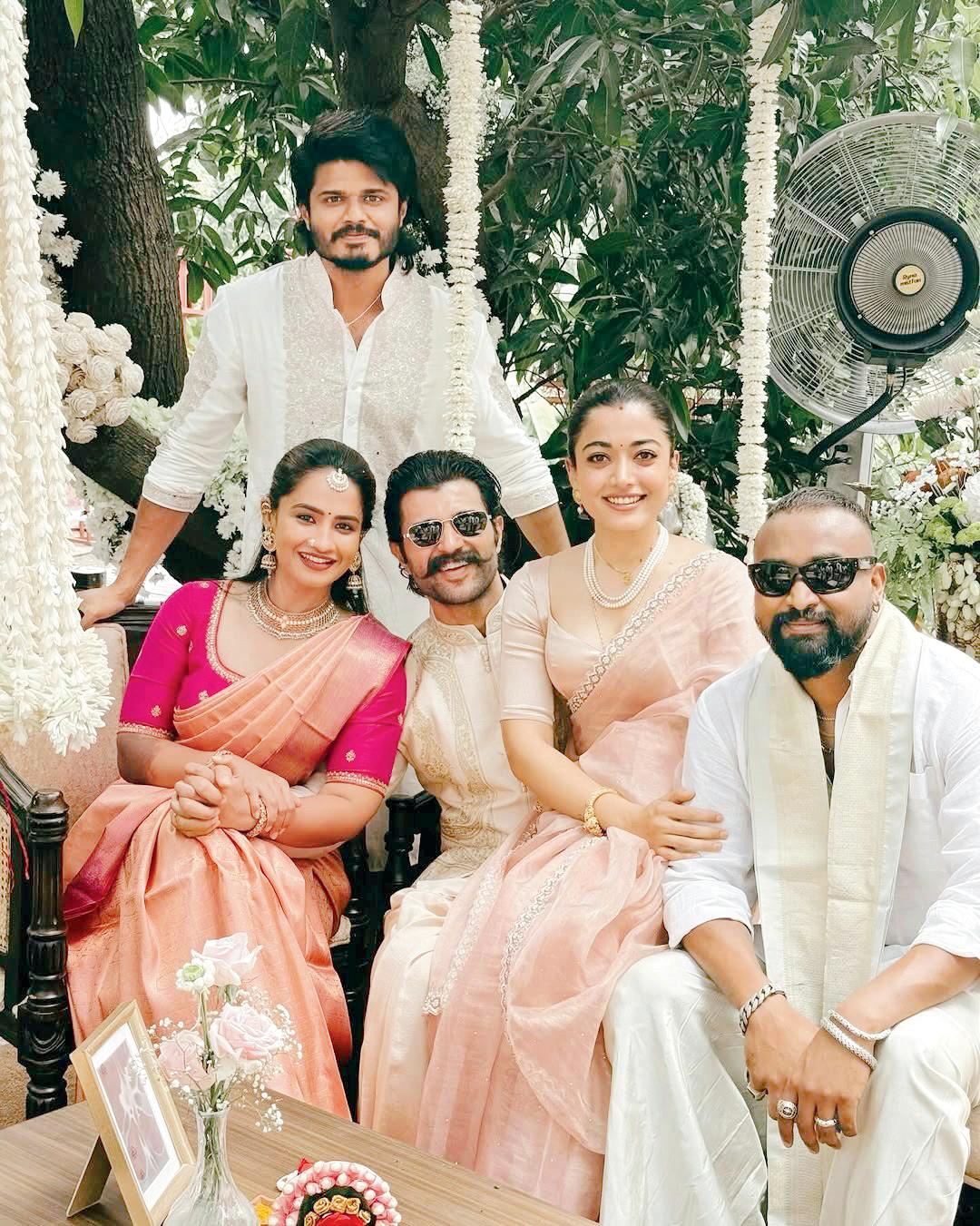 સાઉથની સુપરસ્ટાર જોડી વિજય દેવરકોંડા અને રશ્મિકા મંદાના હાલમાં એક મિત્રનાં લગ્નમાં હાજરી આપવા પહોંચી હતી અને તેમણે લગ્ન એન્જૉય કર્યાં હતાં. આ લગ્નની તસવીરો સોશ્યલ મીડિયામાં ઝડપથી વાઇરલ થઈ રહી છે. વિજયના ભાઈ આનંદ દેવરકોંડાએ પોતાના સોશ્યલ મીડિયા પર અનેક તસવીરો શૅર કરી છે જેમાં તે વિજય, રશ્મિકા અને નવપરિણીત કપલ સાથે જોવા મળે છે.