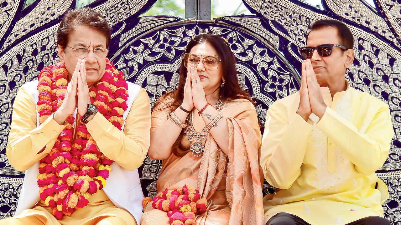 ગઈ કાલે ઉત્તર પ્રદેશના પ્રયાગરાજમાં બાગેશ્વર ધામના પંડિત ધીરેન્દ્ર કૃષ્ણ શાસ્ત્રીની ત્રણ દિવસની રાષ્ટ્ર હનુમંત કથાનો આરંભ થયો હતો. એ પહેલાં એક કળશયાત્રા યોજાઈ હતી જેમાં ટીવી-સિરિયલ ‘રામાયણ’માં રામ-સીતા-લક્ષ્મણ બનેલાં અરુણ ગોવિલ, દીપિકા ચીખલિયા અને સુનીલ લાહિરી જોડાયાં હતાં.