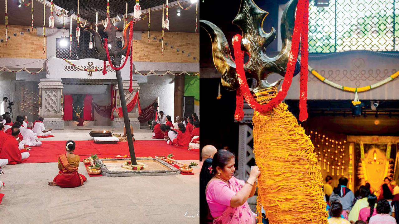 મંદિરના પ્રાંગણમાં એક ત્રિશૂળ છે જેની ફરતે કેટલીક તંત્ર વિધિઓ થાય છે અને લોકો માનતા માનવા માટે હળદરની ગાંઠ બાંધે છે.