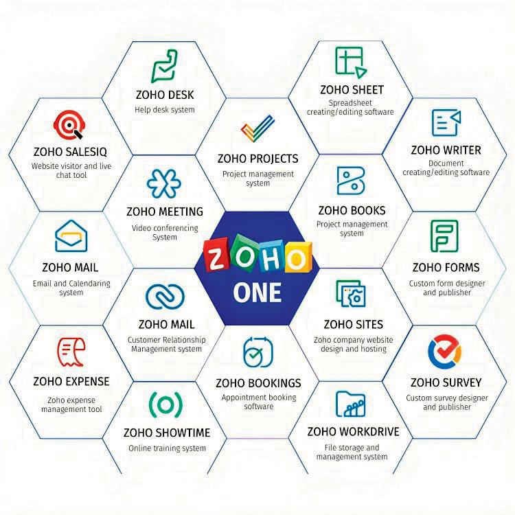 ઝોહો વર્કડ્રાઇવ - જેનું બેઝિક કામ એ છે કે કોઈ પર્ટિક્યુલર કામ કે પ્રોજેક્ટ માટે અલગ-અલગ ડેટા ભેગા કરવામાં આવ્યા હોય કે બનાવવામાં આવ્યા હોય તો આ વર્કડ્રાઇવ એને એક જ જગ્યાએ સેવ કરે છે એટલું જ નહીં, માનો કે કામને લગતા ડેટા હોવાથી એ તમારે તમારી ટીમ સાથે શૅર કરવા હોય કે તેઓ જોઈ શકે એમ રાખવા હોય તો એ પણ રાખી શકાય છે. અને ધારો કે કોઈ એવા ડેટા કે વિગતો છે જે અંગત છે અને તમારે કોઈ સાથે શૅર નથી કરવા તો માત્ર એને એક ‘પર્સનલ’નો ટૅગ આપો એટલે એ તમારા અંગત ડેટામાં સેવ થઈ જશે.