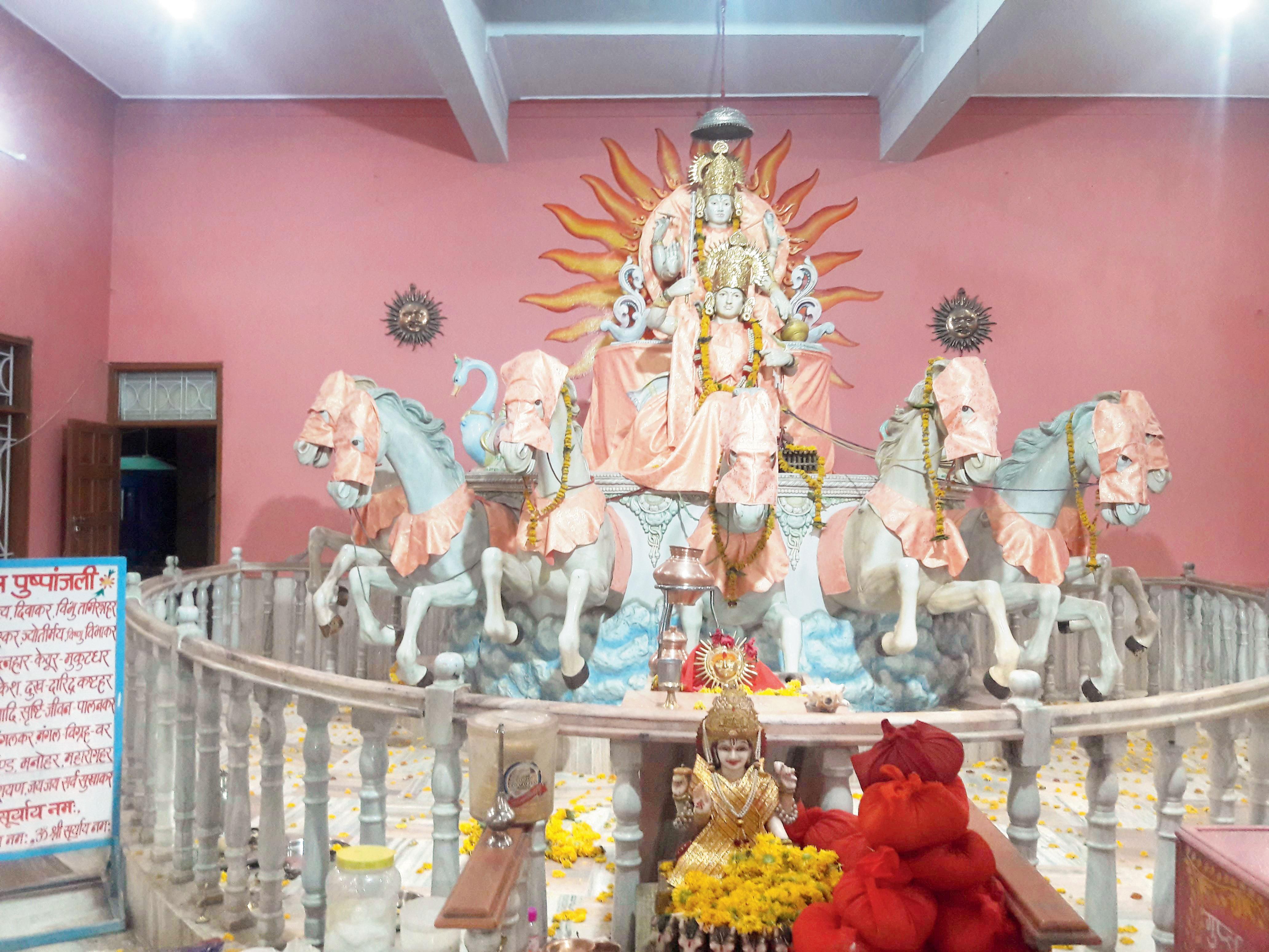 સાત અશ્વો સાથે રથ પર બિરાજમાન સૂર્યદેવ.