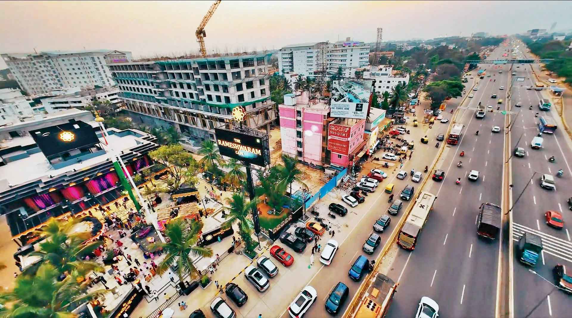 હાઇવે પરથી રામેશ્વરમ કૅફેનો ડ્રોન-વ્યુ.