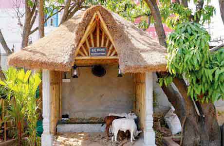 કૅફેમાં બહાર આવેલી નાની ગૌશાળા.