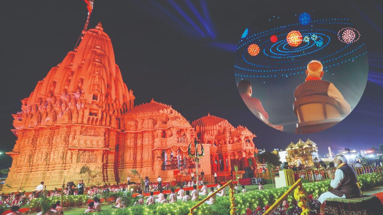 સોમનાથમાં નરેન્દ્ર મોદીએ આધ્યાત્મિકતાની અલખ જગાવીને કર્યો ઓમકારનાદ- નરેન્દ્ર મોદી માદરે વતનમાં : સોમનાથમાં યોજ્યો રોડ-શો : લોકોએ ઉમળકાભેર કર્યું સ્વાગત : ૩૦૦૦ ડ્રોનથી સોમનાથની ગાથાના અલૌકિક, અદ્ભુત ડ્રોન-શોથી રચાયો આધ્યાત્મિકતાનો માહોલ: નરેન્દ્ર મોદી સહિત સૌ ધાર્મિકજનો ડ્રોન-શો નિહાળી થયા અભિભૂત