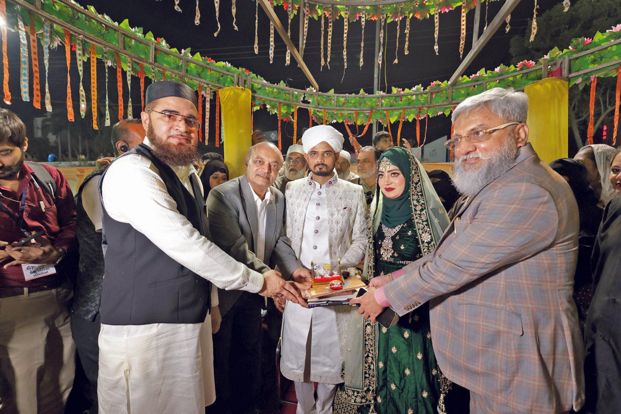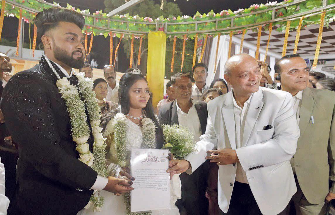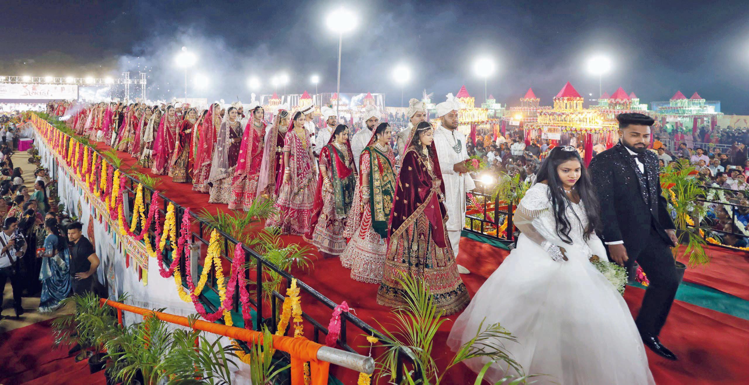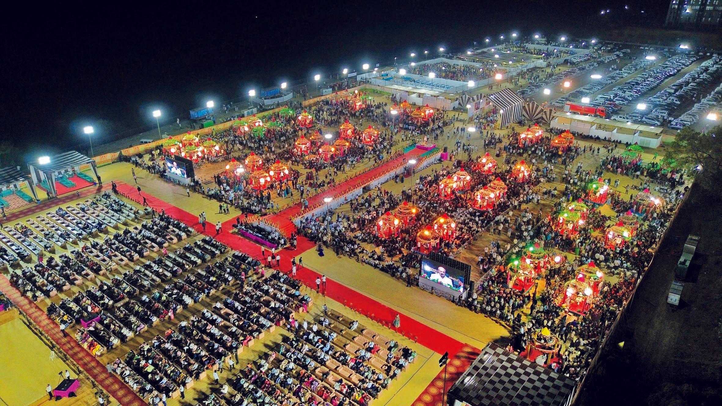 સુરતમાં એક માંડવા નીચે હિન્દુ, મુસ્લિમ અને ખ્રિસ્તી ધર્મની પિતા વગરની ૧૧૧ દીકરીઓનાં હર્ષોલ્લાસ સાથે રંગેચંગે લગ્ન શનિવાર-રવિવારે યોજાયાં હતાં. સુરતના PP સવાણી પરિવાર દ્વારા ‘કોયલડી’ થીમ સાથે ધામધૂમથી ઉલ્લાસપૂર્ણ રીતે લગ્ન કરાવ્યાં હતાં. સવાણી પરિવારના મહેશ સવાણીએ ‘મિડ-ડે’ને કહ્યું હતું કે ‘દીકરીઓ તુલસી-ક્યારા સમાન છે ત્યારે દીકરીઓને તુલસીના છોડની જેમ સાસુમા સાથે લઈ જાય એવો ભાવ હતો એટલે આ લગ્નમાં સાસુઓ પોતાની વહુઓને હાથ પકડીને લગ્નમંડપ સુધી દોરી ગઈ હતી અને તુલસીના છોડ આપીને તેમનું સ્વાગત કર્યું હતું. સામાન્ય રીતે દીકરીઓને તેમના ભાઈ કે મામા લગ્નમંડપમાં લાવે છે, પરંતુ આ પ્રસંગે સાસુઓ વહુને લગ્નમંડપ સુધી લઈ ગઈ હતી.’