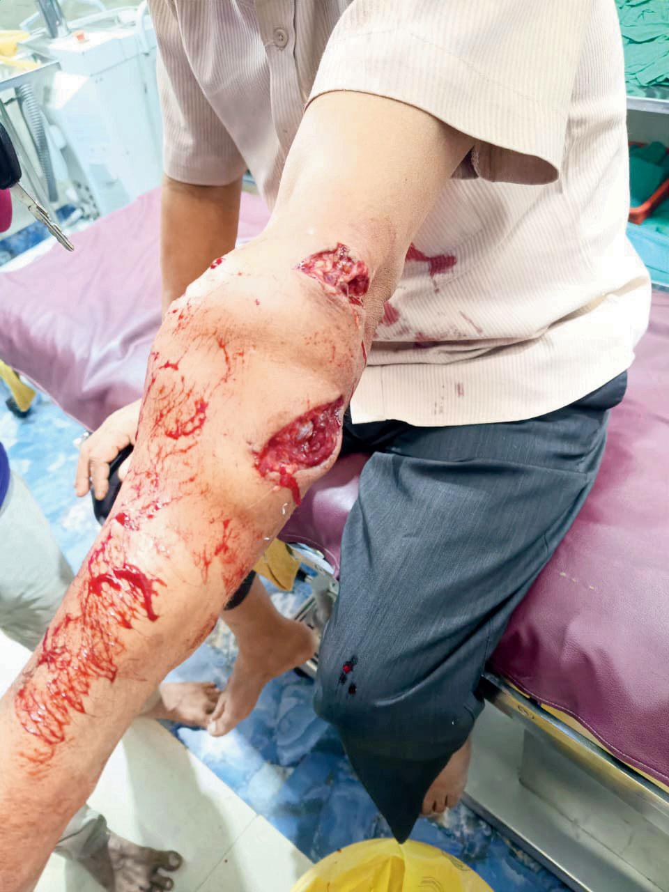 દીપડાએ હાથ પર ભરેલાં બચકાં દર્શાવી રહેલો ઘાયલ