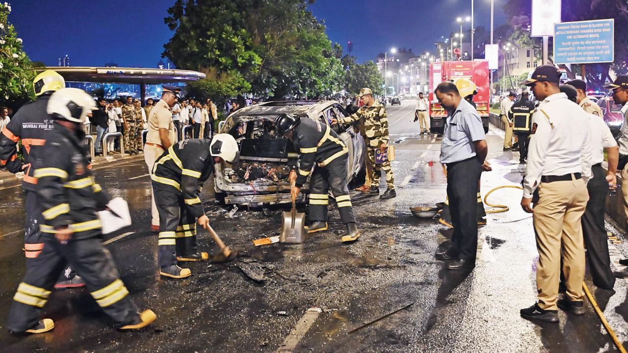 શુક્રવારે રાતે મરીન ડ્રાઇવ પરથી પસાર થતી એક કારને પાછળથી આવતી ટૅક્સીએ ટક્કર મારતાં બન્ને કાર ભડકે બળી હતી. રાતે ૮ વાગ્યે ટ્રાઇડેન્ટ હોટેલ નજીક કમ્પ્રેસ્ડ નૅચરલ ગૅસ (CNG)થી ચાલતી કાળી-પીળી ટૅક્સીએ આગળ જતી કારને ટક્કર મારી હતી જેને લીધે ટૅક્સીમાં ધડાકાભેર આગ લાગી હતી. થોડી જ વારમાં બન્ને કારમાંથી આગની મોટી જ્વાળાઓ નીકળવા લાગી હતી. બે ફાયર-એન્જિનની મદદથી આગ બુઝાવવામાં આવી હતી.