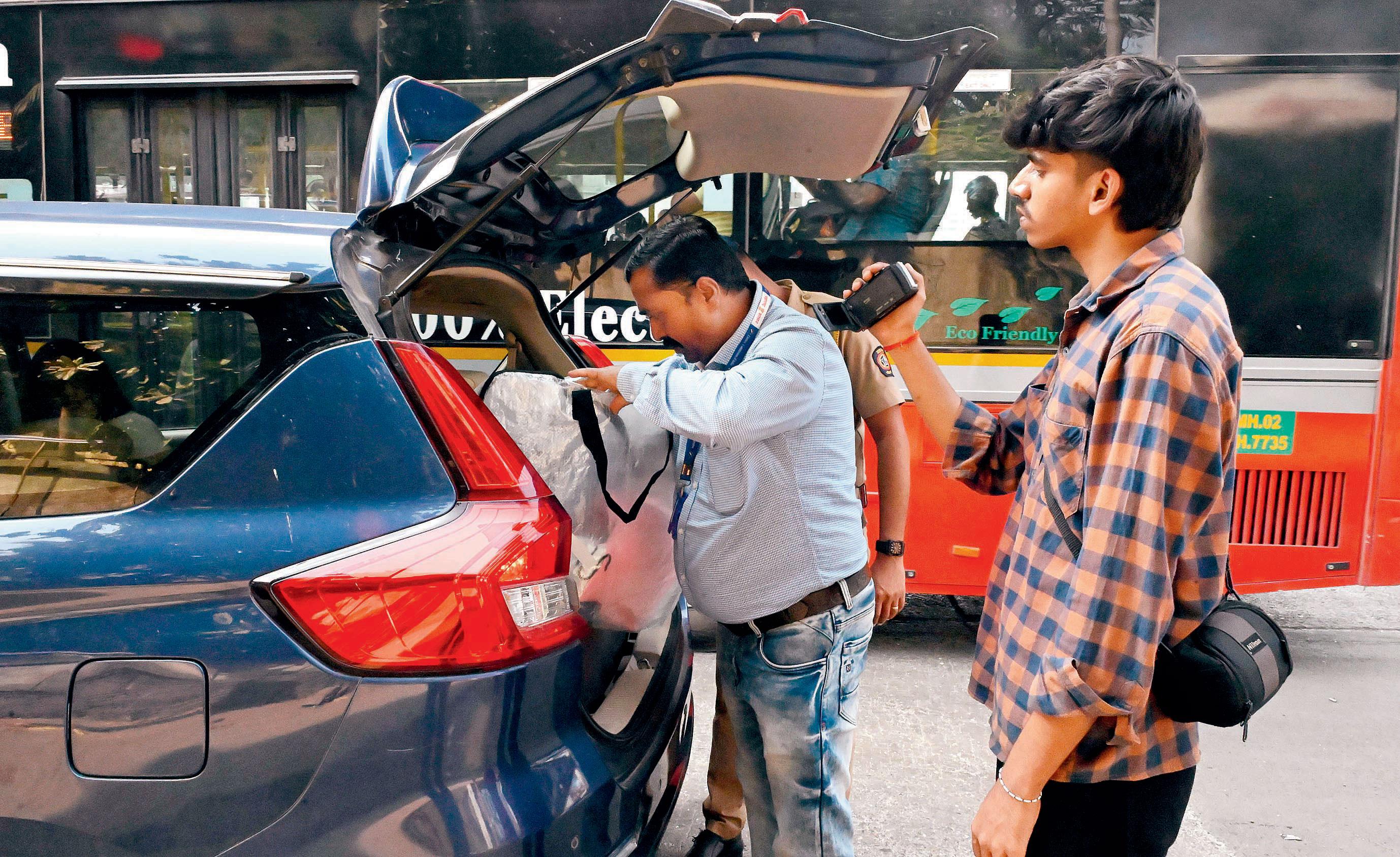 બૃહન્મુંબઈ મ્યુનિસિપલ કૉર્પોરેશન (BMC)નાં ઇલેક્શન્સ નજીક આવી રહ્યાં છે. ચૂંટણીને ધ્યાનમાં રાખીને શહેરમાં સલામતી, તકેદારીઓમાં વધારો કરવામાં આવ્યો છે. ગઈ કાલે શહેરમાં અનેક મહત્ત્વનાં જંક્શન્સ પર પોલીસ દ્વારા વાહનોનું ચેકિંગ હાથ ધરવામાં આવ્યું હતું. જોગેશ્વરી લિન્ક રોડ પર પણ પોલીસ અને ઇલેક્શન-ઑફિસરોએ વાહનોની તપાસ કરી હતી અને શહેરમાં કોઈ જોખમી ચીજવસ્તુ, સામગ્રી ટ્રાન્સપોર્ટ ન થાય એની તકેદારી રાખી હતી. આ વાહનોના ચેકિંગ વખતે આખી પ્રક્રિયાની વિડિયોગ્રાફી પણ કરવામાં આવી રહી હતી. તસવીરઃ નિમેશ દવે