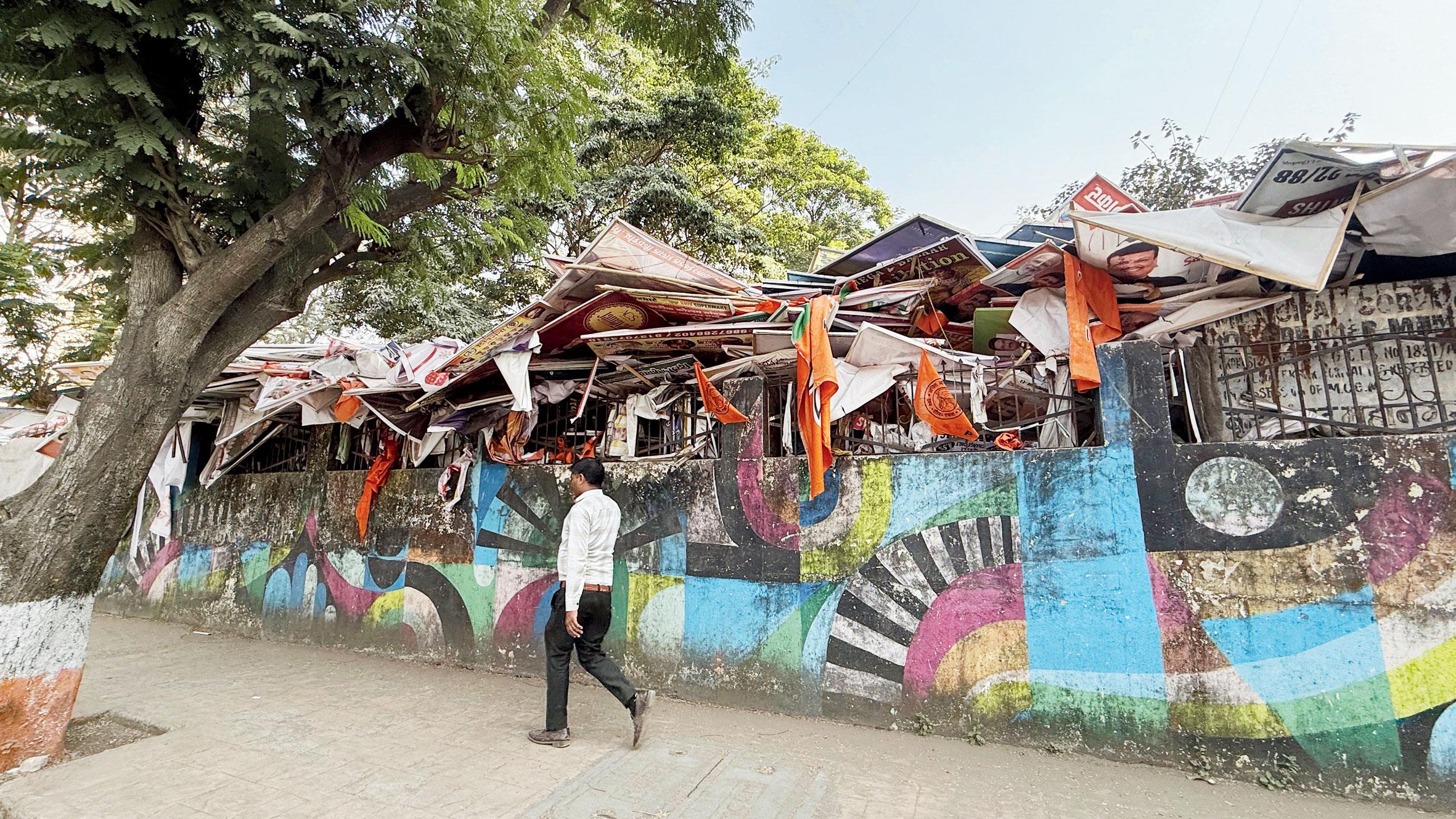 બૃહન્મુંબઈ મ્યુનિસિપલ કૉર્પોરેશન (BMC)ની ચૂંટણીને ગણતરીના દિવસો જ બાકી છે ત્યારે આચારસંહિતાના પગલે BMCના કામદારોએ ૧૧,૦૦૦થી વધુ પૉલિટિકલ હોર્ડિંગ્સ ઉતારી લીધાં છે. રસ્તાઓ અને બિલ્ડિંગ્સ પરથી ઉતારી લીધેલાં હોર્ડિંગ્સને બોરીવલી લિન્ક રોડના વેરહાઉસમાં ડમ્પ કરવામાં આવ્યાં હતાં. તસવીર: નિમેશ દવે