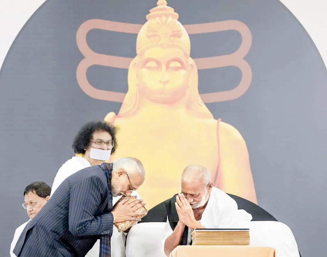 ગઈ કાલે દિલ્હીના ભારત મંડપમમાં શરૂ થયેલી મોરારીબાપુની રામકથાના પ્રથમ દિવસે દેશના ઉપરાષ્ટ્રપતિ સી. પી. રાધાક્રિષ્નને તેમના આશીર્વાદ લીધા હતા.