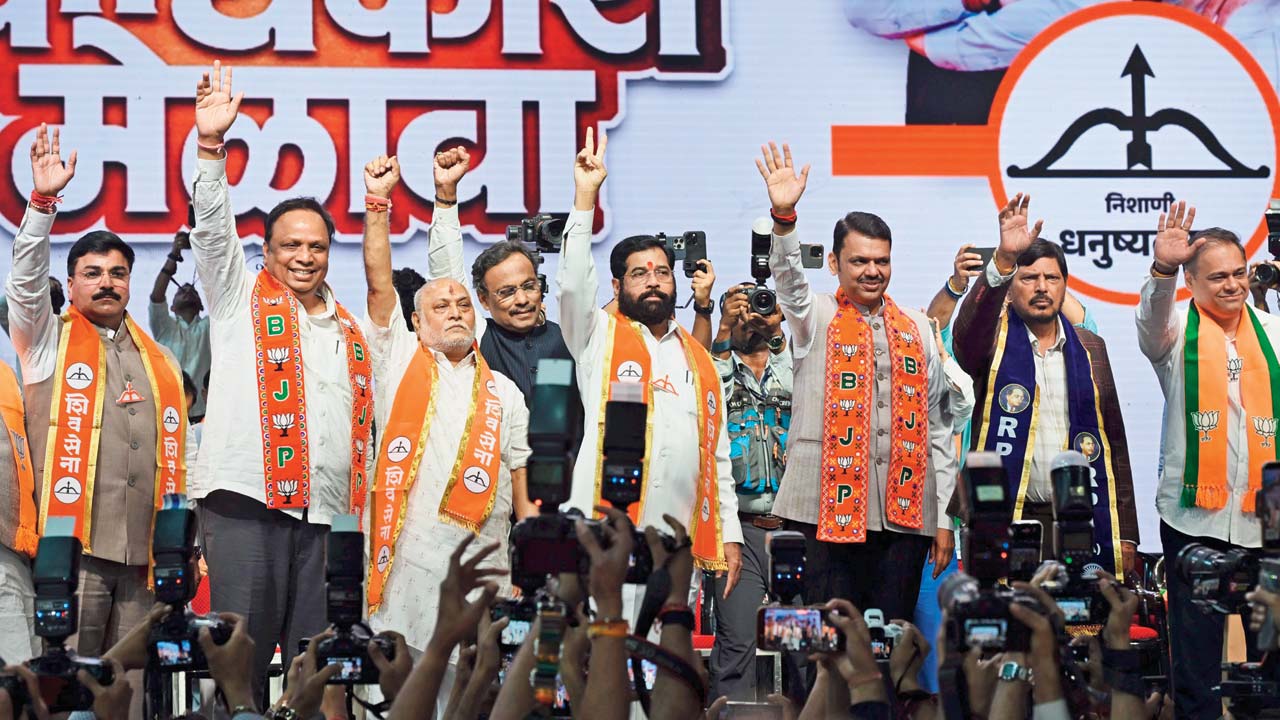 ગઈ કાલે વરલીની નૅશનલ સ્પોર્ટ્સ ક્લબ ઑફ ઇન્ડિયાના ડોમમાં BJP-શિવસેનાની સંયુક્ત સભા યોજાઈ હતી. તસવીર : સૈયદ સમીર અબેદી