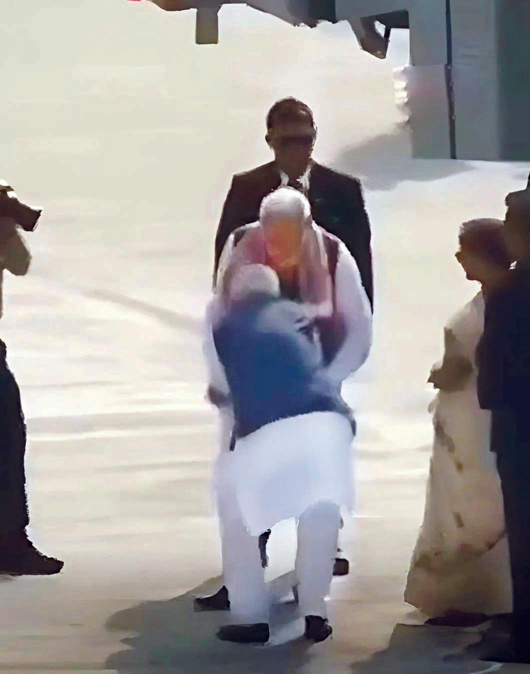 ગઈ કાલે નીતીશ કુમારે દસમી વાર બિહારના મુખ્ય પ્રધાનપદના શપથ લીધા એ કાર્યક્રમમાં હાજરી આપીને વડા પ્રધાન પટના ઍરપોર્ટ પર ગયા ત્યારે તેમને વિદાય આપવા નીતીશ કુમાર પણ ઍરપોર્ટ ગયા હતા. ત્યાં તેમણે નરેન્દ્ર મોદીને પગે લાગવાની ચેષ્ટા કરી હતી, પણ નરેન્દ્ર મોદીએ તેમના હાથ પકડીને તેમને રોકી લીધા હતા.