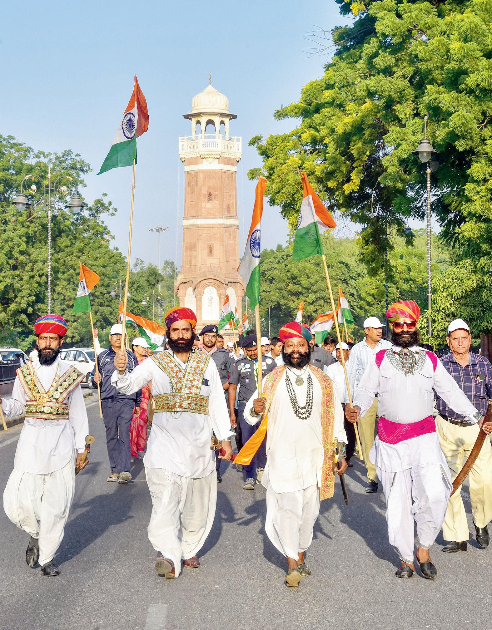 બિકાનેરમાં લોકોએ પરંપરાગત વસ્ત્રો અને તિરંગા સાથે ‘વન્દે માતરમ્’ ગીત ગાતાં-ગાતાં રૅલી કાઢી હતી.