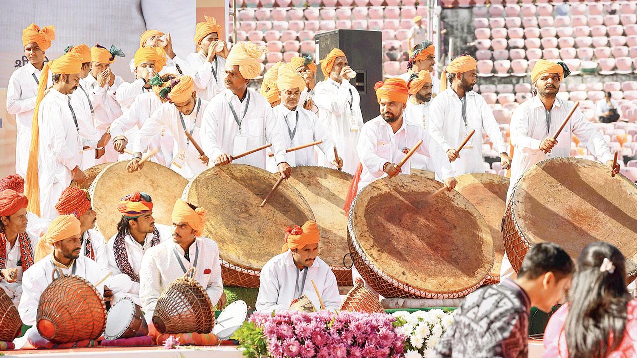 રાજસ્થાનના જયપુરમાં ગઈ કાલે સવાઈ માનસિંહ સ્ટેડિયમમાં હજારોની સંખ્યામાં લોકો રાષ્ટ્રીય ગીતની ઉજવણી માટે એકઠા થયા હતા. એમાં લોકકલાકારોએ પરંપરાગત વાદ્યો પર ‘વન્દે માતરમ્’ ગીત વગાડ્યું હતું.