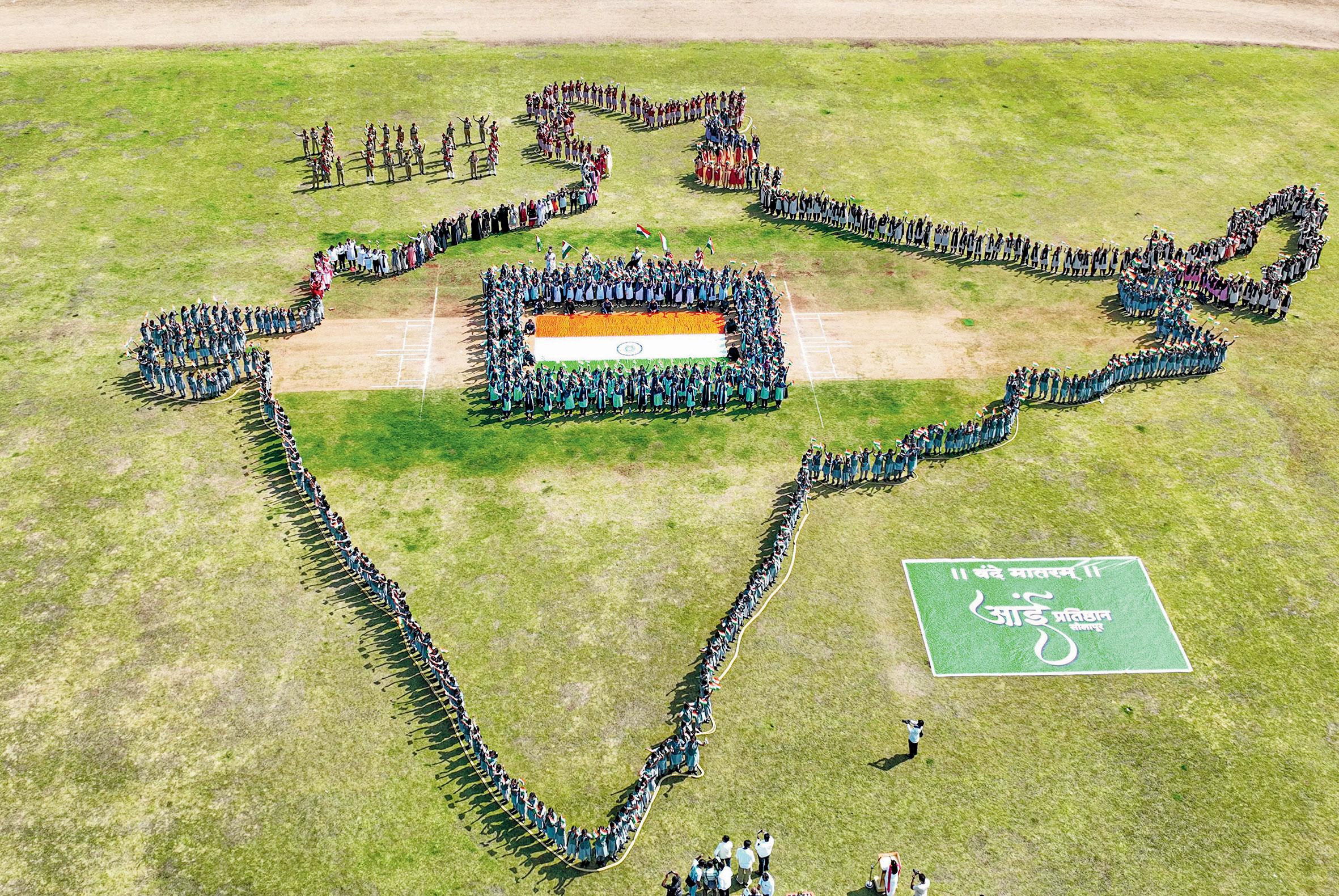 સોલાપુરમાં રાષ્ટ્રીય ગીતની ઉજવણી નિમિત્તે કેટલાક લોકોએ માનવસાંકળ બનાવીને ભારતીય નકશાનો આકાર ઊપસાવ્યો હતો અને કેન્દ્રમાં ભારતનો તિરંગો મૂકવામાં આવ્યો હતો.
