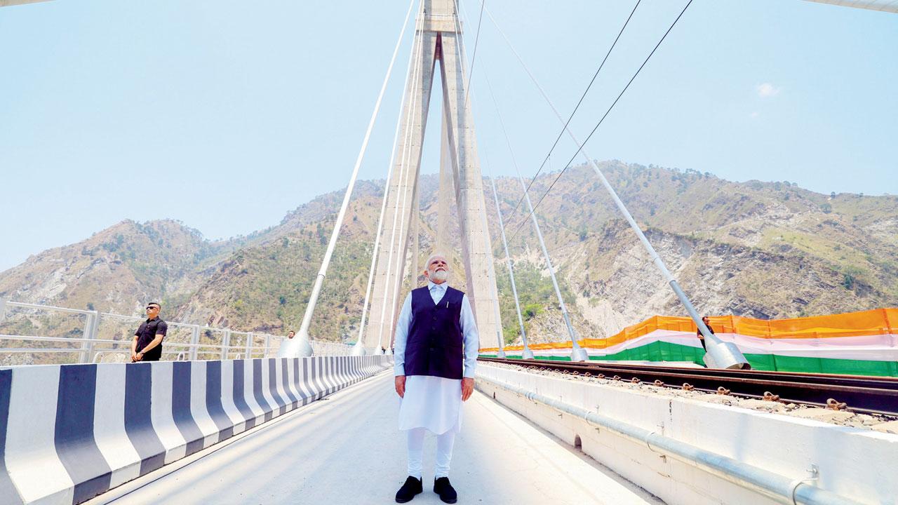 ગઈ કાલે અંજી બ્રિજ પર નરેન્દ્ર મોદી, જે દેશનો પહેલો કેબલ સ્ટે રેલવે બ્રિજ છે