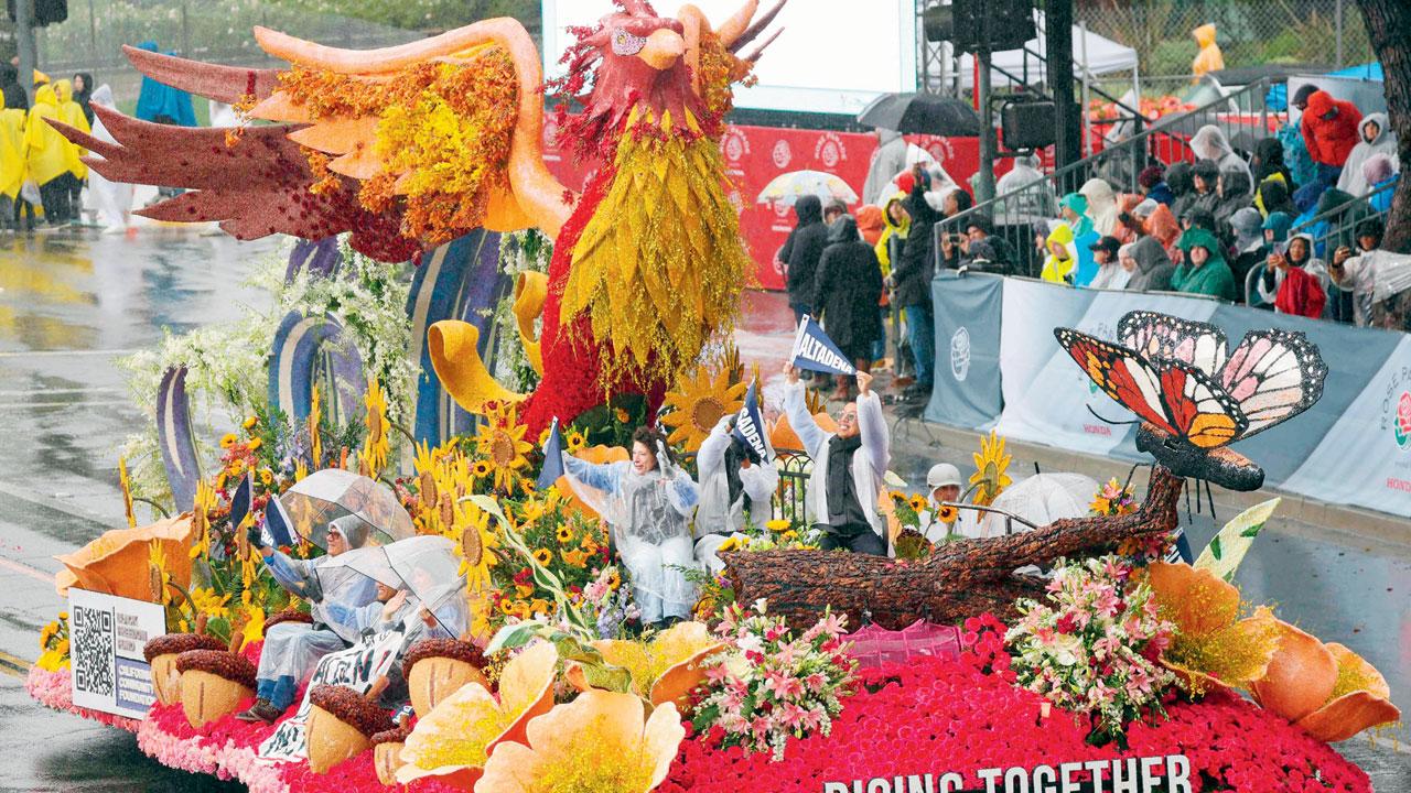 આ થીમ-બેઝ્ડ આર્ટવર્કમાં રિયલ રંગબેરંગી ફૂલોથી મનમોહક આકૃતિઓ તૈયાર કરવામાં આવે છે. આ રમણીય ટૅબ્લોની ૮.૮ કિલોમીટર લાંબી પરેડ થાય છે.