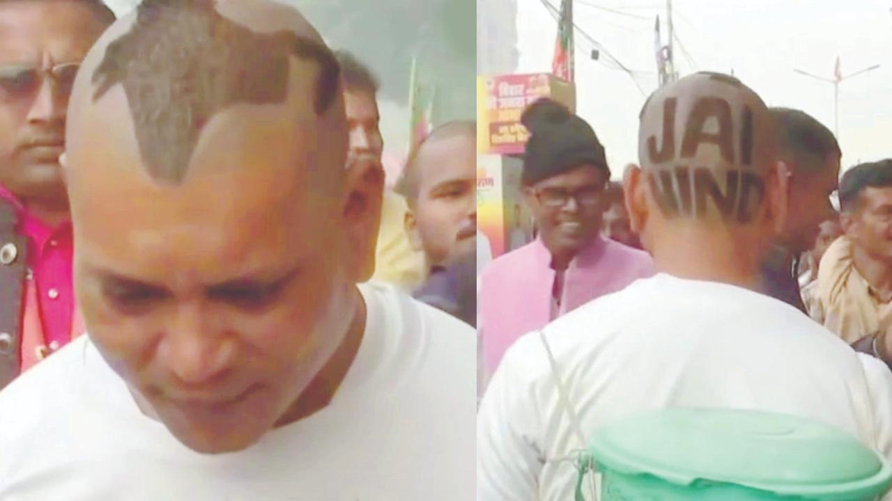 મુંડન એવું કે બચેલા વાળમાં ભારતનો નકશો અને JAI HIND જોવા મળે- ગાંધી મેદાનમાં જોવા મળ્યો અનોખો ચાહક
