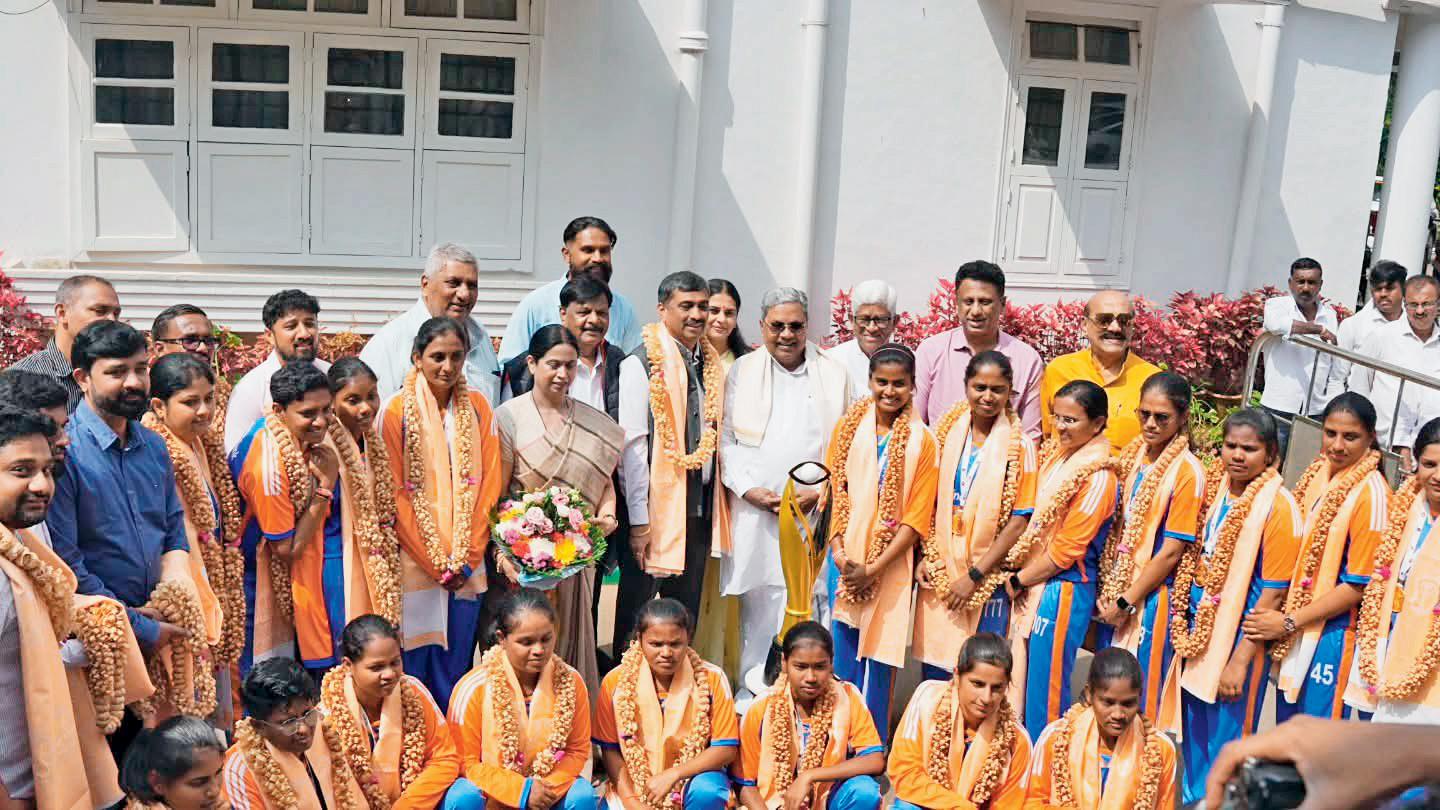 કર્ણાટકના મુખ્ય પ્રધાન સિદ્ધારમૈયાએ વિશ્વ ચૅમ્પિયન ભારતીય વિમેન્સ બ્લાઇન્ડ ક્રિકેટ ટીમને મહિલા T20 વર્લ્ડ કપમાં ઐતિહાસિક વિજય બદલ સન્માનિત કરી છે. સોમવારે બૅન્ગલોર ઍરપોર્ટ પર શાનદાર સ્વાગત બાદ ગઈ કાલે ભારતીય ટીમે મુખ્ય પ્રધાન સિદ્ધારમૈયા સાથે મુલાકાત કરી હતી. મુખ્ય પ્રધાને તમામ પ્લેયર્સને શાલ અને હાર પહેરાવીને શુભેચ્છા પાઠવી હતી.