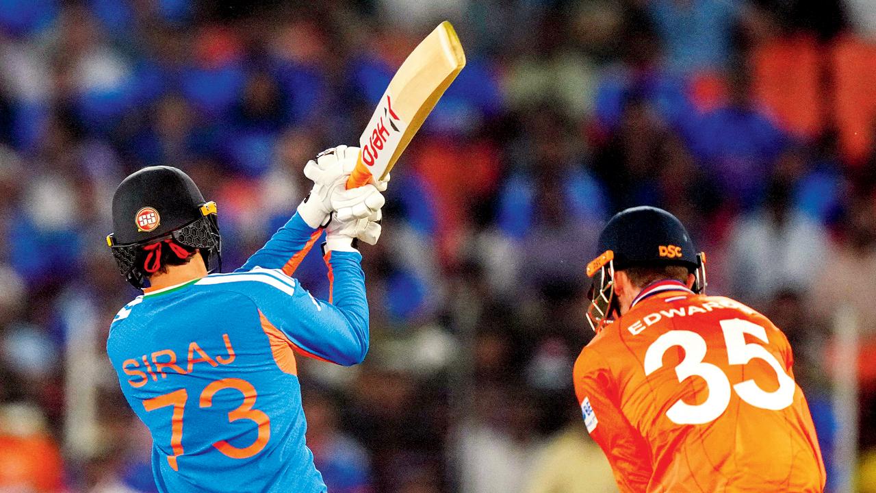 ટૉસ જીતીને ભારતીય ટીમે પહેલાં બૅટિંગ કરવાનો નિર્ણય લીધો હતો. આ T20 વર્લ્ડ કપમાં પહેલી વાર ૩૦૦ રનનો આંકડો પાર થશે એવી અપેક્ષાઓ તો હજી સુધી પૂરી નહોતી થઈ, પણ અમદાવાદની ફ્લૅટ પિચ પર જો ભારત પહેલાં બૅટિંગ કરશે તો થઈ જ જશે એવું લાગી રહ્યું હતું. જોકે ટુર્નામેન્ટ પહેલાં મેદાન ગજવી રહેલો અભિષેક શર્મા સતત ત્રીજી મૅચમાં ખાતું ખોલાવ્યા વિના આઉટ થતાં અને મૅન ઇન ફૉર્મ ઈશાન કિશન માત્ર ૧૮ રન બનાવી આઉટ થઈ જતાં મેદાનમાં સોપો પડી ગયો હતો અને ૨૦૦ રનનાં પણ ફાંફાં પડવા લાગ્યાં હતાં. તિલક વર્માના ૨૭ બૉલમાં ૩૧, કૅપ્ટન સૂર્યકુમાર યાદવના ૨૮ બૉલમાં ૩૪ અને હાર્દિક પંડ્યાના ૨૧ બૉલમાં ૩૦ રન ઉપરાંત શિવમ દુબેની ૩૧ બૉલમાં ૬ સિક્સર અને ચાર ફોર સાથે ૬૬ રનની ધમાકેદાર ઇનિંગ્સને લીધે ભારત ૨૦ ઓવરમાં ૬ વિકેટે ૧૯૩ રન સુધી પહોંચી શક્યું હતું. નેધરલૅન્ડ્સ વતી લોગન વૅન બીકે ૩ અને આર્યન દત્તે ૪ ઓવરમાં માત્ર ૧૯ રન આપીને અભિષેક અને કિશનની મહત્ત્વપૂર્ણ વિકેટ લીધી હતી.