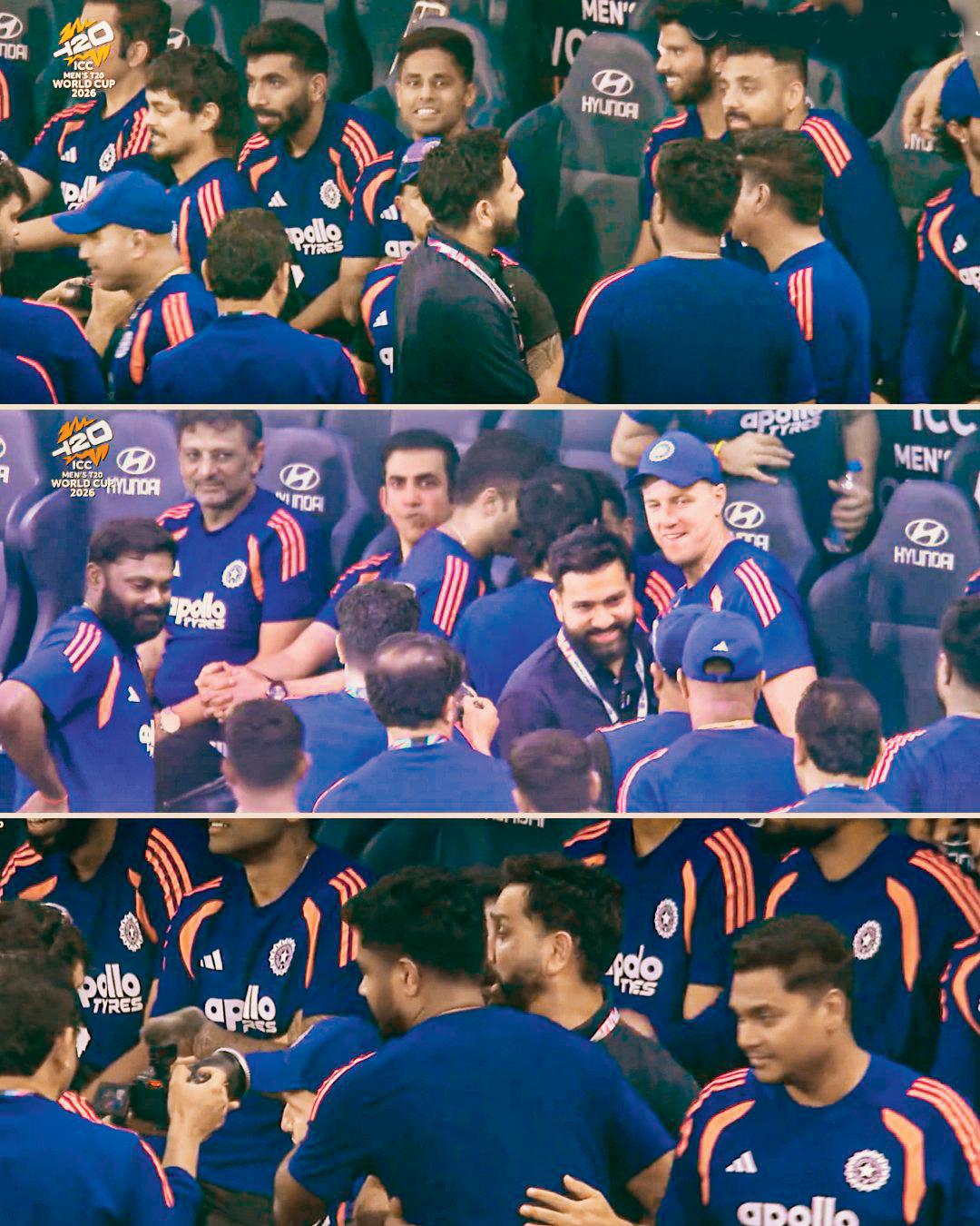 કોલંબોમાં ગઈ કાલે ભારત અને પાકિસ્તાનની મૅચ જોવા માટે T20 વર્લ્ડ કપ 2026નો બ્રૅન્ડ ઍમ્બૅસૅડર અને ભૂતપૂર્વ વર્લ્ડ કપ ચૅમ્પિયન રોહિત શર્મા પણ હાજર રહ્યો હતો. તેણે મૅચ પહેલાં ભારતીય ટીમના પૅવિલિયનમાં પહોંચીને તમામ પ્લેયર્સ અને સપોર્ટ-સ્ટાફનો ઉત્સાહ વધાર્યો હતો.