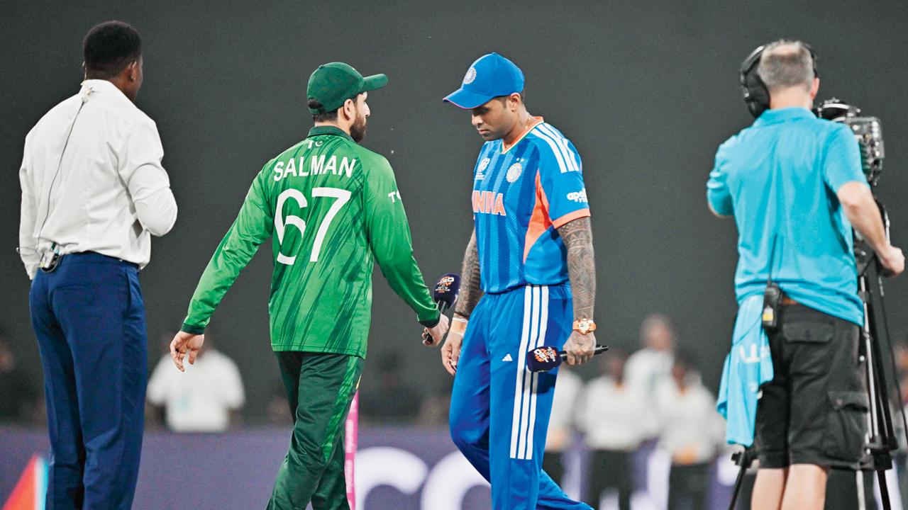 ભારત અને પાકિસ્તાન વચ્ચે ગયા વર્ષે થયેલા સૈન્ય-સંઘર્ષ બાદ એશિયા કપમાં ભારતે પાકિસ્તાનીઓ સાથે હૅન્ડશેક ન કરવાનો નિર્ણય લીધો હતો. એશિયા કપથી શરૂ થયેલી આ પ્રથા સૂર્યા ઍન્ડ કંપનીએ ગઈ કાલે કોલંબોમાં T20 વર્લ્ડ કપ મૅચ દરમ્યાન પણ જાળવી રાખી હતી. ટૉસ સમયે બન્ને કૅપ્ટન્સ વચ્ચે મૅચ બાદ બન્ને ટીમોના સભ્યો વચ્ચે પણ કોઈ હૅન્ડશેક થયો નહોતો. જોકે કૉમેન્ટરી-પૅનલમાં ભારત અને પાકિસ્તાનના ભૂતપૂર્વ ક્રિકેટર્સ એકસાથે બેસીને કૉમેન્ટરી કરતા જોવા મળ્યા હતા.