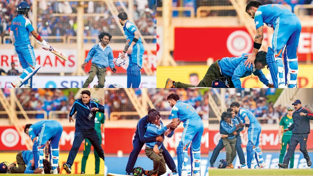 વિરાટ કોહલી ગઈ કાલે પોતાની બાવનમી વન-ડે સેન્ચુરી ફટકારીને એની ઉજવણી કરી રહ્યો હતો ત્યારે તેનો એક ચાહક સિક્યૉરિટીનું કવચ ભેદીને તેના સુધી પહોંચી ગયો હતો અને તેના પગે પડી ગયો હતો.