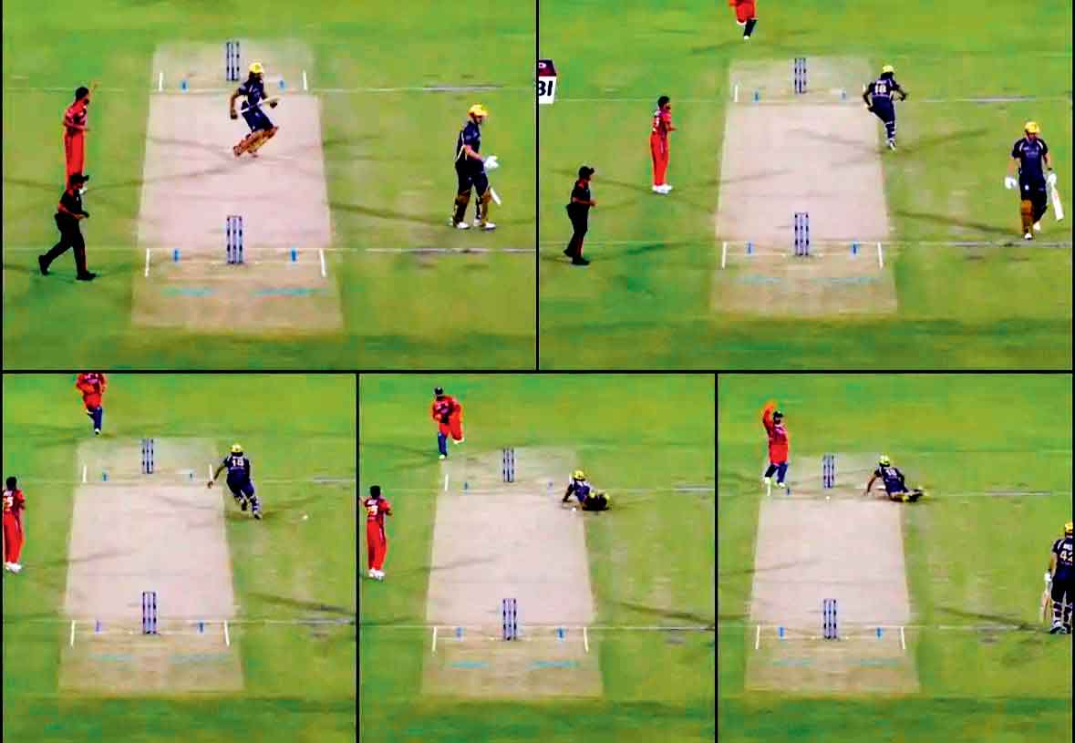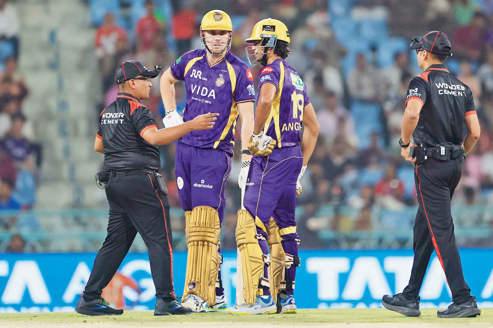 નિયમ અનુસાર સ્ટમ્પ્સ તરફ થ્રો થયેલો બૉલ જોઈને રન દોડવાની દિશા જ્યારે ખેલાડી બદલે ત્યારે ઑબ્સ્ટ્રક્ટિંગ ધ ફીલ્ડ હેઠળ આઉટ જાહેર થાય છે. જોકે કલકત્તાના કોચિંગ સ્ટાફ સહિત અંગક્રિશ રઘુવંશીએ થર્ડ અમ્પાયરના આ નિર્ણયને અયોગ્ય માનીને રોષ વ્યક્ત કર્યો હતો. કલકત્તાએ ખરાબ પરિસ્થિતિમાં રિન્કુ સિંહ અને સુનીલ નારાયણની શાનદાર ૬૨ રનની ભાગીદારીથી ૭ વિકેટે ૧૫૫ રન કર્યા હતા. રિન્કુ સિંહે ૫૧ બૉલમાં ૮૩ રનનો હાઇએસ્ટ IPL સ્કોર કર્યો હતો.