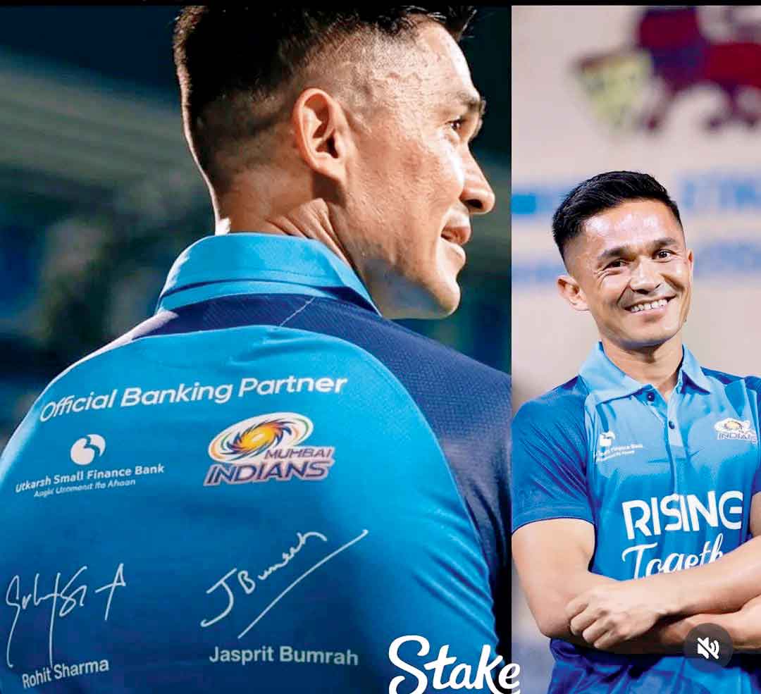 ભારતનો ભૂતપૂર્વ ફુટબૉલર સુનીલ છેત્રી મંગળવારે વાનખેડેમાં પ્રૅક્ટિસ-સેશન દરમ્યાન મુંબઈના ખેલાડીઓને મળ્યો હતો. છેત્રીએ મુંબઈના કોચ માહેલા જયવર્દને, બોલર શાર્દૂલ ઠાકુર અને દીપક ચાહર ઉપરાંત કૅપ્ટન હાર્દિક પંડ્યા સાથે ઘણીબધી વાતો કરી હતી. હાર્દિકે તેને છેત્રી લખેલું મુંબઈ ઇન્ડિયન્સનું ટી-શર્ટ ગિફ્ટમાં આપ્યું હતું. તેણે આ ટી-શર્ટ પહેરીને ફોટો પણ સોશ્યલ મીડિયામાં શૅર કર્યો હતો. ટી-શર્ટની પાછળ બુમરાહ અને રોહિત શર્માના ઑટોગ્રાફે ચાહકોનું ખાસ ધ્યાન ખેંચ્યું હતું.