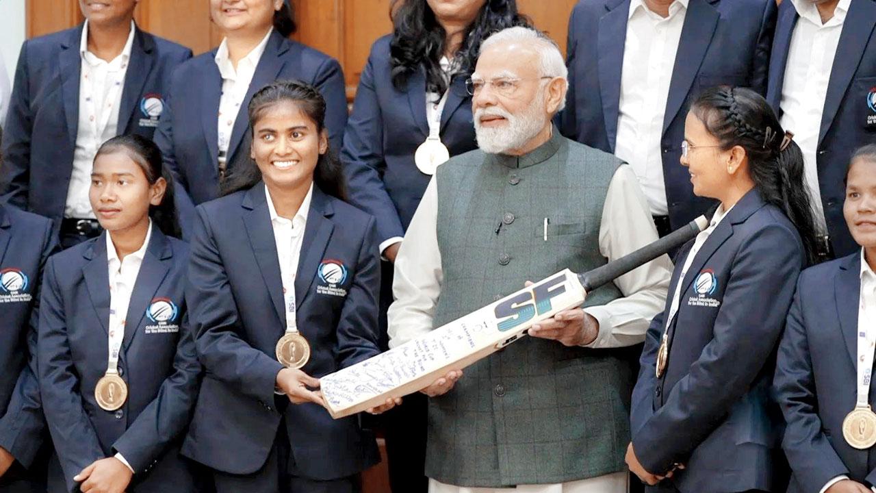 બ્લાઇન્ડ વિમેન્સ ટીમની પ્લેયર્સે પોતાના ઑટોગ્રાફવાળું બૅટ વડા પ્રધાનને ગિફ્ટ કર્યું હતું.