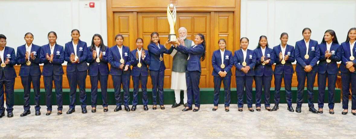 પ્રથમ વિમેન્સ બ્લાઇન્ડ વિમેન્સ T20 ક્રિકેટ વર્લ્ડ કપ વિજેતા ભારતીય ટીમે ગઈ કાલે દેશની રાજધાની દિલ્હીમાં વડા પ્રધાન નરેન્દ્ર મોદીના નિવાસસ્થાને શુભેચ્છા-મુલાકાત કરી હતી. તમામ બ્લાઇન્ડ મહિલા ક્રિકેટર્સ પોતાના મેડલ સહિત બ્લાઇન્ડ ક્રિકેટ અસોસિએશનના લોગો સાથે ચૅમ્પિયન્સ લખેલો કોટ પહેરીને વડા પ્રધાનને મળવા પહોંચી હતી.